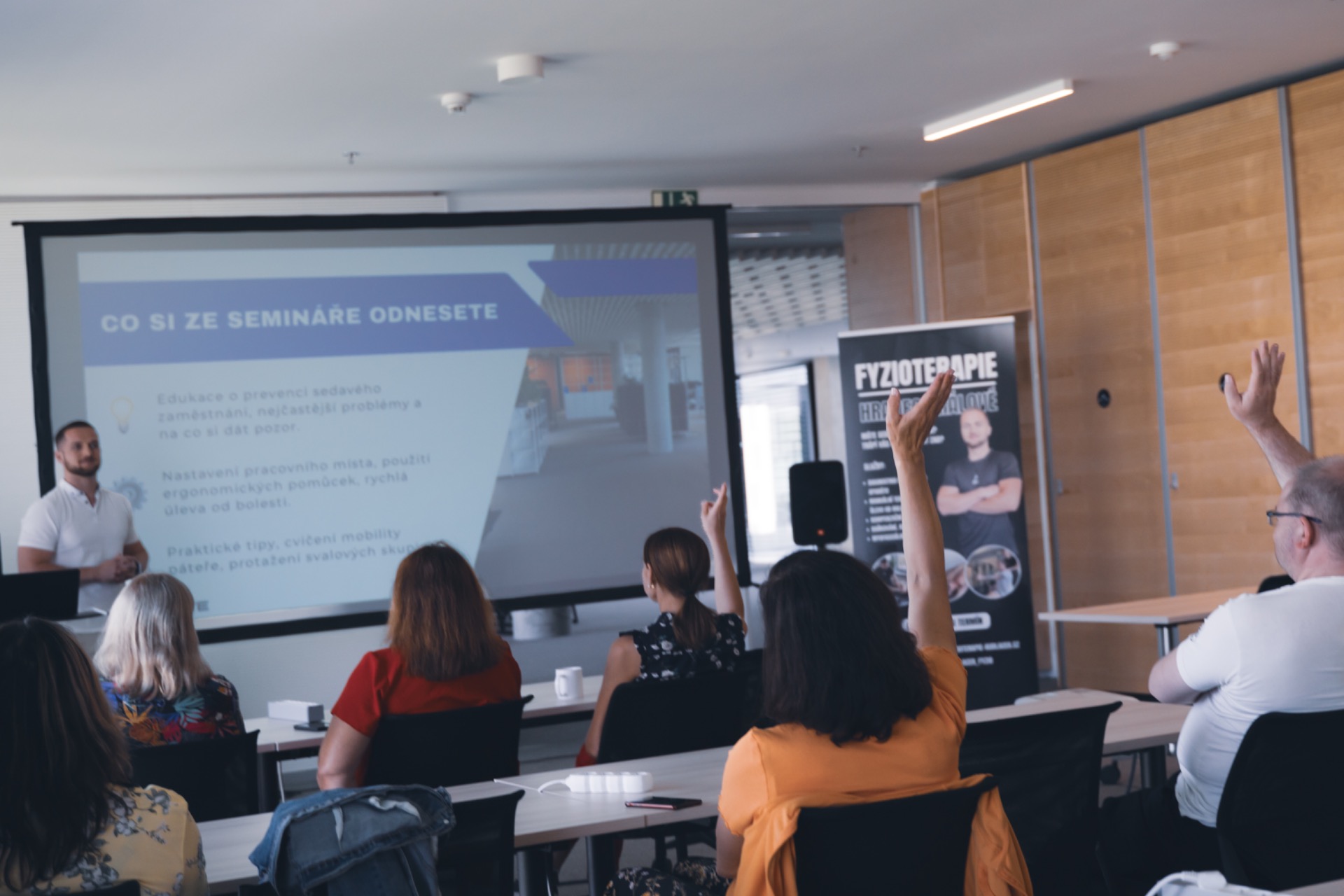 Bolesti zad, krční páteře nebo syndrom karpálního tunelu – to jsou nejčastější důvody krátkodobé pracovní neschopnosti u lidí se sedavým zaměstnáním. Díky našim preventivním seminářům a praktickým workshopům pomáháme firmám tyto problémy výrazně omezit. Výsledkem je méně absencí, vyšší produktivita a spokojenější zaměstnanci.